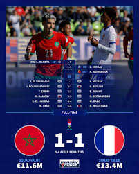 Gedurende die wedstryd, het Moroko ‘n vroeë doelpunt aangeteken wat hulle ‘n voordeel gegee het. Die Franse span het egter nie teruggeskrik nie en vinnig gereageer met ‘n doeltreffende aanval wat gelei het tot ‘n gelykstelling. Die wedstryd het voortgegaan met beide spanne wat kwaliteit speletjies gelewer het, wat die toeskouers aan die rand van hulle sitplekke gehou het. Eindelik het die wedstryd eindig in ‘n [uitslag], wat die spanning en energie van die wedstryd weerspieël.